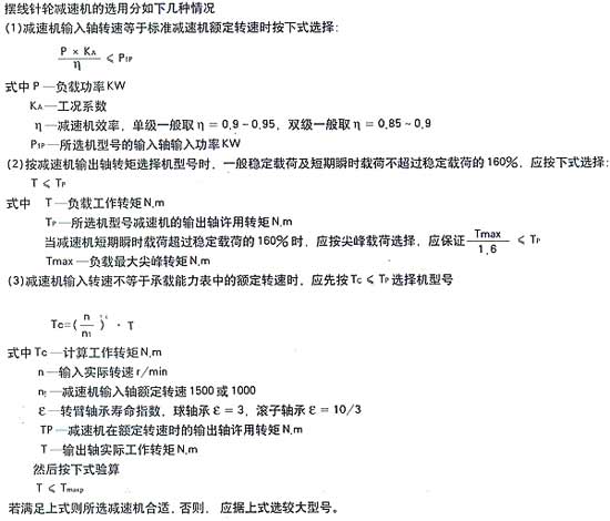 本系列擺線針輪減速機(jī)是在每日八小時單向連續(xù)運轉(zhuǎn),載荷平穩(wěn)的條件下設(shè)計的,當(dāng)減速機(jī)實際工作時間和載荷性質(zhì)與上述設(shè)計條件不符時,應(yīng)以工作情況系數(shù)KA進(jìn)行修正,KA值按表八確定。