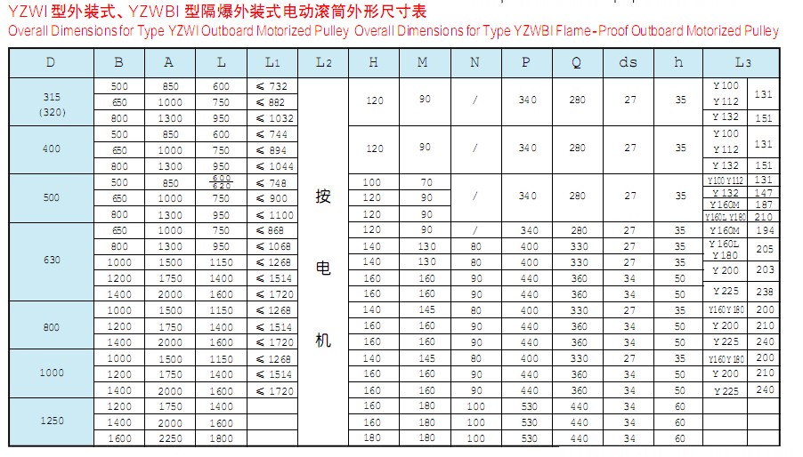 該產品是供各種固定式帶式輸送機、斗式提升機、卷揚機等配套的新型驅動裝置。其內部采用行星擺線減速機構,使電機外露與滾筒直聯,具有承載能力大、過載能力強、傳動平穩(wěn)、噪音低、壽命長,使用維修方便,操作安全可靠等優(yōu)點??蓾M足各種逆止、包膠等要求。隔爆外裝式電動滾筒其隔爆標志位dl、dllAT4。dl適合于有甲烷或煤塵礦井中,dllAT4適合于有I、IIA級T2~T4組爆炸危險性混合物存在的場所,dllBT4適用于有I、IIA、IIB級T2~T4組爆炸危險性混合物存在的場所。