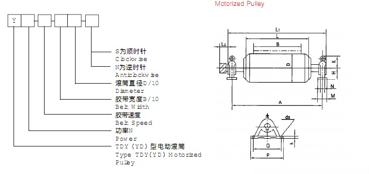 該產(chǎn)品是DT型、DTⅡ型通用固定式膠帶機的內(nèi)驅(qū)動裝置,其內(nèi)部采用定軸齒輪二級傳動,屬于老產(chǎn)品,但用途最廣泛,與減速機相比較,具有占地小、重量輕、外觀整齊、效率高,在粉塵大、潮濕泥濘的惡劣環(huán)境下仍能正常工作等優(yōu)點。隨著電動滾筒的不斷革新與技術(shù)進步,根據(jù)需要也可以制成三級減速(0.08-0.63米/秒之間的低帶速),以滿足用戶之要求。